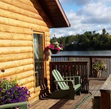 Each cabin features its own private deck with a propane BBQ grill and tank, perfect for relaxing and enjoying the outdoors.